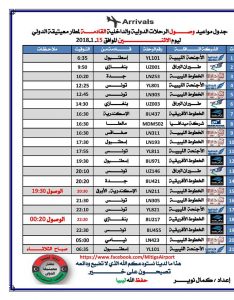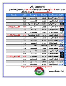 فيما يلي جدول الرحلات المفترض انطلاقها اليوم الاثنين وتوقفت بسبب الاوضاع الامنية