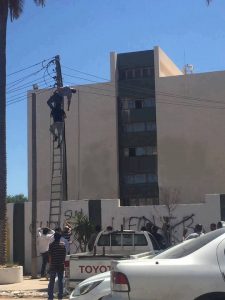 حيث تعرض الولد للحادثة أثناء قيامه بصيانة سلك مقطوع بمنطقة أولاد الحاج أمام معهد 15 إبريل ونقل على إثرها إلى عيادة الفتح بطريق الشط وهو الآن يتلقى العلاج ووضعيتعه الصحية مستقرة .