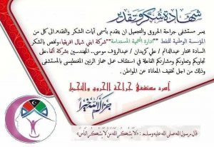 وقام السيد مختار عبد الدائم مدير ادارة التنمية المستدامة بالمؤسسة الوطنية للنفط والسيد ونيس الرويمي نائب مدير عام شركة ايني الايطالية والفريق المصاحب بزيارة الموقع ومقابلة مدير المستشفى للاطلاع عن قرب على ما تم تنفيذه من أعمال، وتم اعادة تشغيل جهاز الرنين المغناطيسي ليقوم بتقديم الخدمة للمواطنين المحتاجين لهذه الخدمة في الحال.