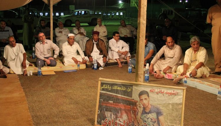 اجتمع المهندس مصطفى صنع الله رئيس المؤسسة الوطنية للنفط بحضور السيد/بلقاسم شنقير عضو مجلس الادارة مع اعيان و وجهاء واحة مرادة :السيد/ عاشور محمد يوسف و السيد/ ابراهيم عبد السلام ابراهيم و السيد/ بوعجيلة آدم بو عجيلة و السيد/ بوخريص محمد الهيشي و السيد/ محمد اذياب خليفة و السيد/ امحمد خليفة حمد و قد استهل المهندس مصطفى الاجتماع بالترحم على ارواح الشهداء من سرية مرادة المقاتلة الذين سقطوا دفاعا عن الحقل بتاريخ 2 ابريل 2016 و متمنيا العودة الآمنة للمفقودين.