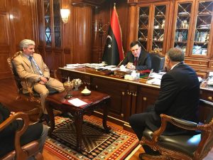 التقى “فائز السراج” رئيس المجلس الرئاسي لحكومة الوفاق الوطني الثلاثاء بمقر المجلس بالعاصمة طرابلس ” خالد الزروق” رئيس مجلس إدارة مصرف الادخار والاستثمار العقاري والمدير العام “محي الدين العروسي”