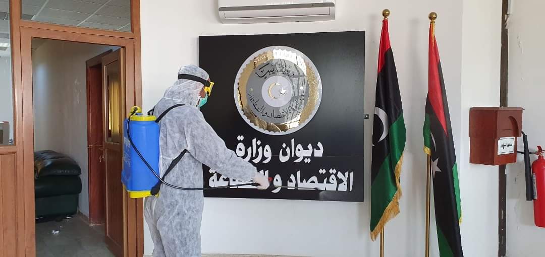أعلنت وزارة الاقتصاد والصناعة بحكومة الوفاق الوطني عن استكمالها الحملة الوقائية المتمثلة في تعقيم المبانئ الإدارية للوزارة بعدد من مواقعها كديوان الوزارة بالسراج و مقر بوهريدة و السجل التجاري العام جنزور .