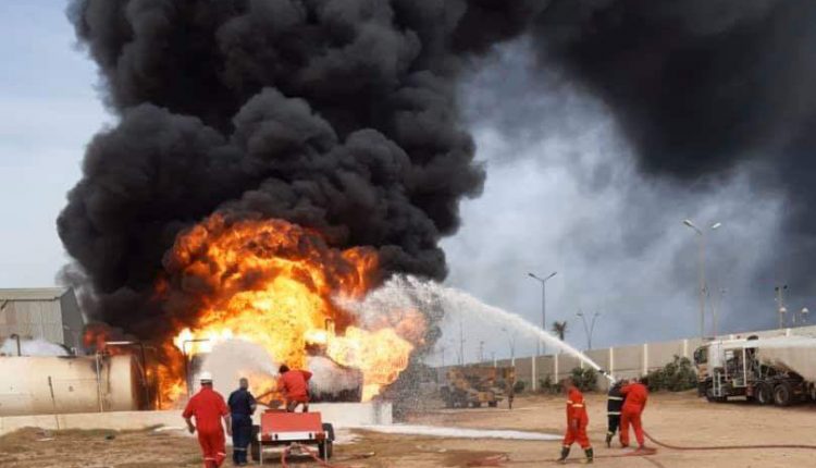 البريقة للنفط تعلن إصابة حظيرة خزانات وقود الطيران التابعة لها بمطار معيتيقة