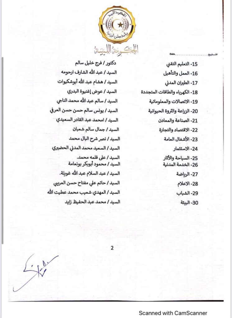 نشرت الحكومة الإستقرار الوطني التشكيلة الوزارية المؤقتة للحكومة الليبية لعام 2022 اليوم الأثنين الموافق 28/مارس /2022.