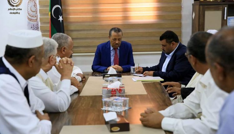 عقد رئيس مجلس وزراء الحكومة الليبية المؤقتة” عبدالله عبدالرحمن الثني” اجتماعاً مع وفداً من مشائخ وأعيان الجنوب .