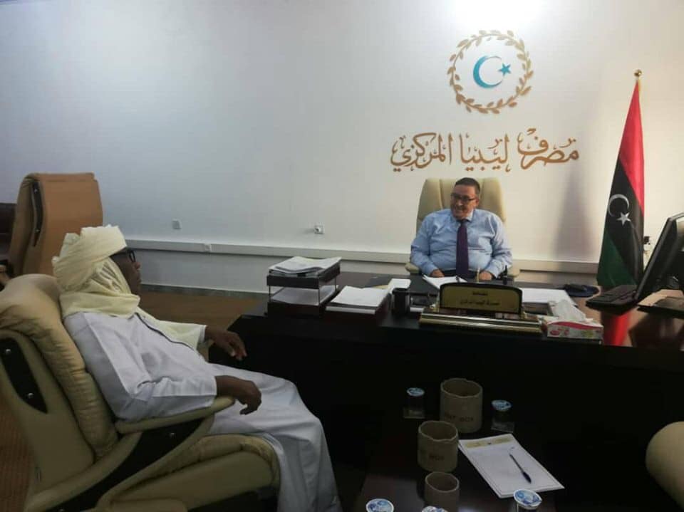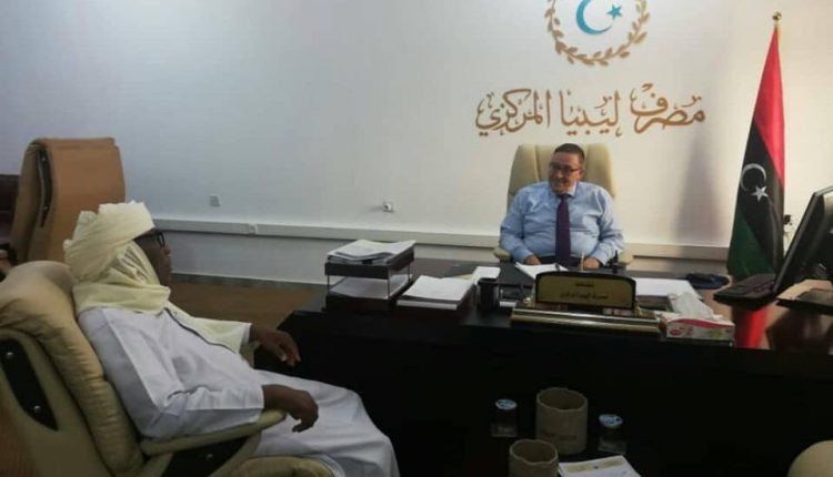 عقد محافظ مصرف ليبيا المركزي البيضاء “علي الحبري” اجتماعاً أمس الثلاثاء مع نائب رئيس المجلس الاجتماعي الأعلي لتوارق ليبيا ورئيس المجلس التسييري لبلدية غات “إبراهيم ماخي” لمناقشة كيفية توفير السيولة النقدية لمواطني مدينة غات لتخفيف الإشكاليات التي تواجههم جراء أزمة السيولة.
