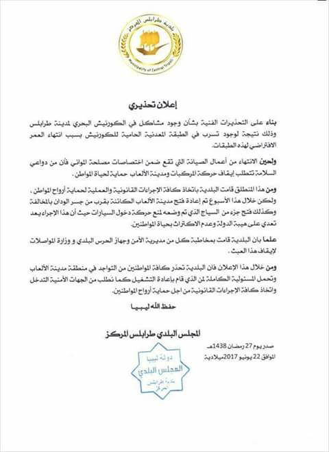 أخبار الحذر والحيطة عند التواجد قرب مدينة الألعاب بواسطة Donia آخر تحديث يونيو 24, 2017 133 شارك تنوه صدى إلى ضرورة أخذ الحيطه والحذر، والإبتعاد عن التواجد بمنطقة مدينة الألعاب بطرابلس حسب توجيهات المجلس البلدى طرابلس المركز نرجوا السلامة للجميع 133 شارك FacebookTwitterGoogle+ReddItWhatsAppPinterestالبريد الإلكتروني