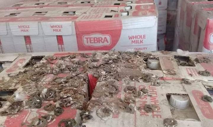 ضبط رجال الحرس البلدي أمس الجمعة عددا من السيارات المحملة بمادة الحليب في إحدى البوابات شرقي العاصمة طرابلس قادمة من أحد المخازن بمدينة زليتن، حيث لاحظوا وجود روث االطيور على بعض الصناديق المضبوطة.