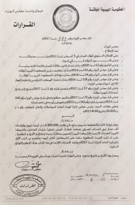 وبحسب القرار الذي نُشر اليوم على الموقع الرسمي للحكومة المؤقتة فإن المبلغ المذكور سيقيد كسلفة على الشركتين المشار إليهما،على أن تخصم القيمة من الباب الأول بالميزانية العامة للدولة لسنة 2017، ويأتي هذا القرار لحل مشكلة إضراب عمال المناولة الأرضية في مطار بنينا الدولي عن العمل خلال المدة الماضية.