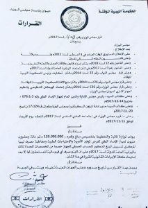 وبحسب القرار الذي صدر بالخصوص فإن مجلس الوزراء بالحكومة المؤقتة أذن لوزارة المالية بتخصيص مبلغ وقدره 120 مليون دينار لجهاز الإمداد الطبي، ومخاطبة المصرف المركزي لتسيل المبلغ لحساب الجهاز خصما من المخصصات المحددة بالميزانية العامة لعام 2017.