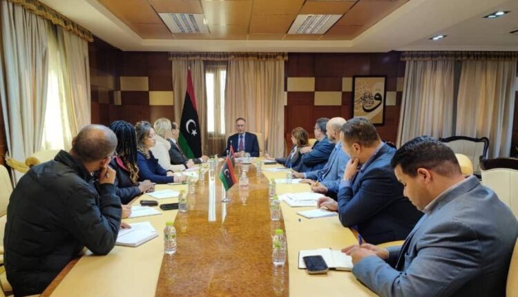 عقد وزير الاقتصاد والتجارة “محمد الحويج” اجتماعًا مع مدير المكتب الإقليمي للبنك الأفريقي للتنمية “محمد العزيزي” يوم أمس الأحد، وبحضور مستشار الوزير “شذر الصيد” ومدير إدارة التعاون الدولي والتجارة الخارجية ومدير إدارة تنمية القطاع الخاص والاستثمار ورئيس قسم الشركات الاستراتيجية والاستثمار ورئيس قسم الدراسات الاقتصادية بالوزارة ونائب مدير المكتب الإقليمي والمشرف على الملف الليبي بالبنك الأفريقي للتنمية، في إطار بحث سُبل التعاون من أجل تحديد الأولويات والخطط والمشاريع التي سيتم تضمينها لأعمال البنك الأفريقي خلال الفترة من 2023 حتى 2024م وفتح أفاق للتعاون والتنمية والاستثمار في ليبيا .