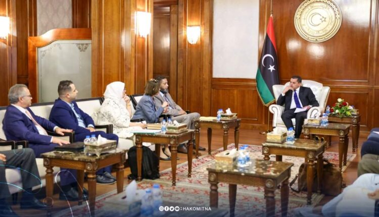 التقى رئيس الوزراء بحكومة الوحدة الوطنية “عبدالحميد الدبيبة” اليوم بمقر ديوان رئاسة الوزراء في طرابلس، مع وفدا من تجمع رابطة أهالي ونشطاء ونازحي درنة في طرابلس الغرب.