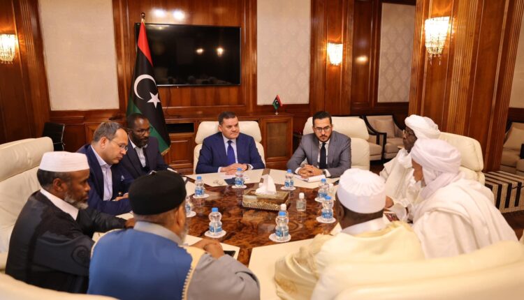 الدبيبة يلتقي أعيان مرزق لبحث عودة الأسر المهجرة ومتطلبات المدينة