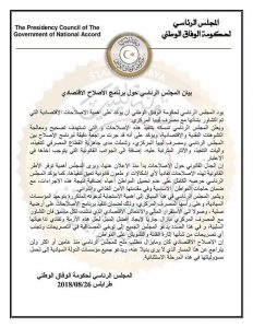 أكد المجلس الرئاسي في بيان له اليوم الأحد تمسكه بتنفيذ الإصلاحات الاقتصادية، مشيرا إلى أن التشاور مع المصرف المركزي ما يزال جاريا لإيجاد أفضل السبل لإقرار هذه الإصلاحات وتفادي تداعياتها السلبية.