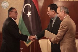 استقبل” فائز السراج ” رئيس المجلس الرئاسي لحكومة الوفاق الوطني الاثنين بمقر المجلس بالعاصمة طرابلس نائب رئيس البنك الدولي لشؤون منطقة ألشرق الأوسط وشمال أفريقيا السيد ” حافظ غانم”