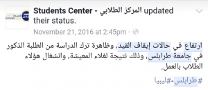 دقت صدى أبواب المسجل العام لجامعة طرابلس علها تجد بين يديه ما يثبت أو ينفي صحة ما يقال عن ترك الشباب لمقاعد الدراسة ، و لقد أكد المسجل أن عام 2015 شهد ايقاف القيد لأكثر من 1500 طالب و طالبة ، ليسير 1600 طالب اخر على نفس منوالهم في عام 2016 ، و هي ارقام وصفها المسجل بالغير مسبوقة في تاريخ جامعة طرابلس .