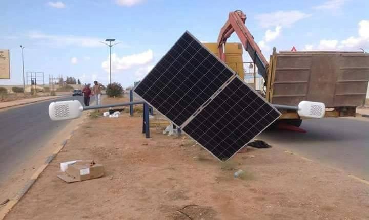 الشروع في تركيب أعمدة إنارة بالطاقة الشمسية بطريق مطار بنينا الدولي