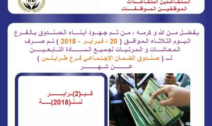 الضمان الاجتماعي فرع طرابلس يصرف مرتبات ومعاشات شهر فبراير