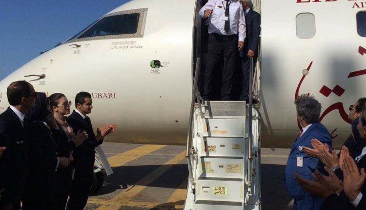 حطت الطائرة ” أوباري” من نوع CRJ 900 علي مهبط مطار ” امعتيقة ” بالعاصمة طرابلس بعد إستكمال صيانتها بمقر الشركة المصنعة بألمانيا