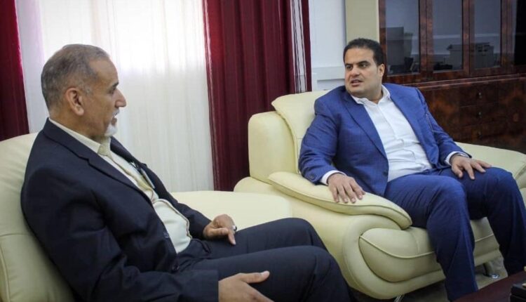 عقد وكيل وزارة النفط لشئون الإنتاج رفعت العبار اجتماعاً مع عضو لجنة الإدارة للعمليات والصحة والسلامة بشركة البريقة لتسويق النفط فرج الجعيدي.