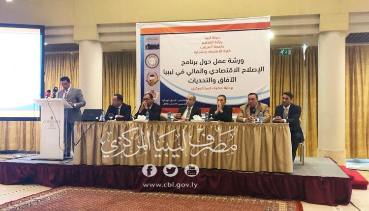 الجدير بالذكر أن الورشة العمل هذه نظمتها كلية الاقتصاد والتجارة بجامعة المرقب برعاية مصرف ليبيا المركزي، ومن المتوقع أن يصدر في نهايتها توصيات هامة تقدم إلى الجهات المعنية بتنفيذ برنامج الإصلاح الاقتصادي والمالي.