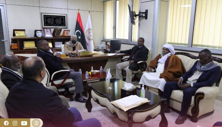 عقدت وزيرة الشؤون الاجتماعية وفاء الكيلاني اليوم الأحد اجتماعاً بعدد من أعيان وحكماء مدينة مرزق المتواجدين في طرابلس وبنغازي وسبها، بحضور مدير مكتب الشؤون الإنسانية والمساعدات ومدير مكتب الإعلام والمستشار الاجتماعي بالوزارة، وذلك في إطار متابعتها لإحتياجات ومتطلبات كافة المهجرين والنازحين من مختلف مناطق ليبيا في الداخل والخارج.