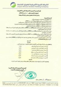 أصدرت الجمعية العمومية للشركة الليبية الأفريقية للطيران القابضة القرار رقم 2 لسنة 2018 اليوم الأربعاء بشأن إعادة تشكيل مجلس إدارة الشركة .
