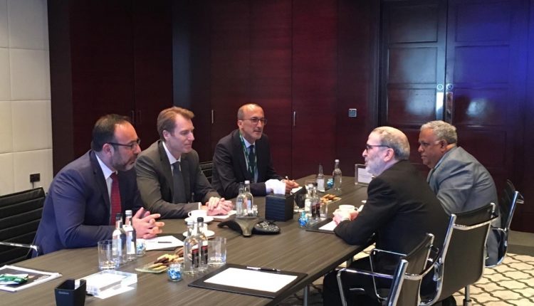بحث مصطفى صنع الله، رئيس مجلس ادارة المؤسسة الوطنية الثلاثاء بالعاصمة البريطانية لندن مع السيد كبسجارد، رئيس مجلس الادارة والمدير التنفيذي لشركة شلمبرجير على هامش مؤتمر النفط والمال سبل تدريب المهندسين والتقنيين بقطاع النفط وتعزيز قدراتهم، واقتراح انشاء مركز تقني في كل من بنغازي وطرابلس على غرار مراكز الشركة بالشرق الأوسط، كما تطرق الجانبان كذلك الى موضوع استئناف عدّة شركات عالمية لعمليات الاستكشاف في ليبيا.
