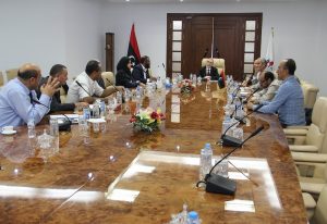 عقد المهندس مصطفى صنع الله رئيس مجلس الإدارة يوم الاربعاء الموافق 25 اكتوبر 2017 م اجتماعاً بمقر المؤسسة الوطنية للنفط مع رئيس لجنة إدارة الشركة الليبية للموانئ السيد / حسن محمد الطناشي بحضور كل من السيد يوسف السنوسي قريو رئيس لجنة ادارة المشغل لشركة مبروك للعمليات النفطية المكلف و السيد / حسين بوسليانة رئيس لجنة الإدارة المشغل لشركة مليته للنفط والغاز، السيد / منير عياد ابوالشواشي مدير إدارة المواد والتسهيلات بالشركة، السيد / عبدالمحسن الديلاوي مدير عام الإدارة العامة للشؤون الإدارية بالمؤسسة ، السيد / مصباح معتوق المستشار القانوني ، السيدة / وفاء محمد بريقة مستشارة مجلس الإدارة بالمؤسسة وعن جانب الشركة الليبية للموانئ السيد عبدالله امحمد الديب مدير ميناء طرابلس بالاضافة إلى عدد من مدراء الادارات بالشركة
