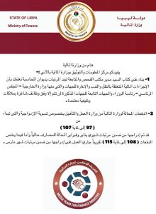 وأضافت الوزارة عبر صفحتها الرسمية أن الدفعات المحالة من وزارة العمل والتأهيل بخصوص تسوية الازدواجية والتي تبدأ من 97 إلى غاية 107 فقد تم إدراجها من ضمن مرتبات شهري يناير وفبراير.