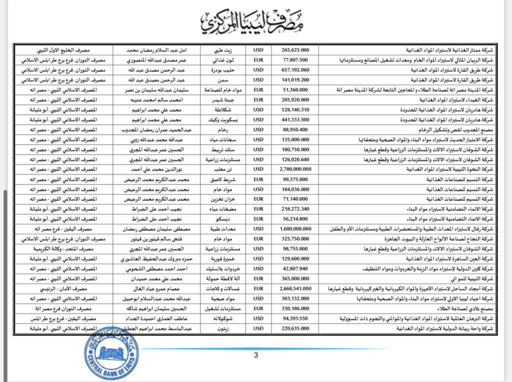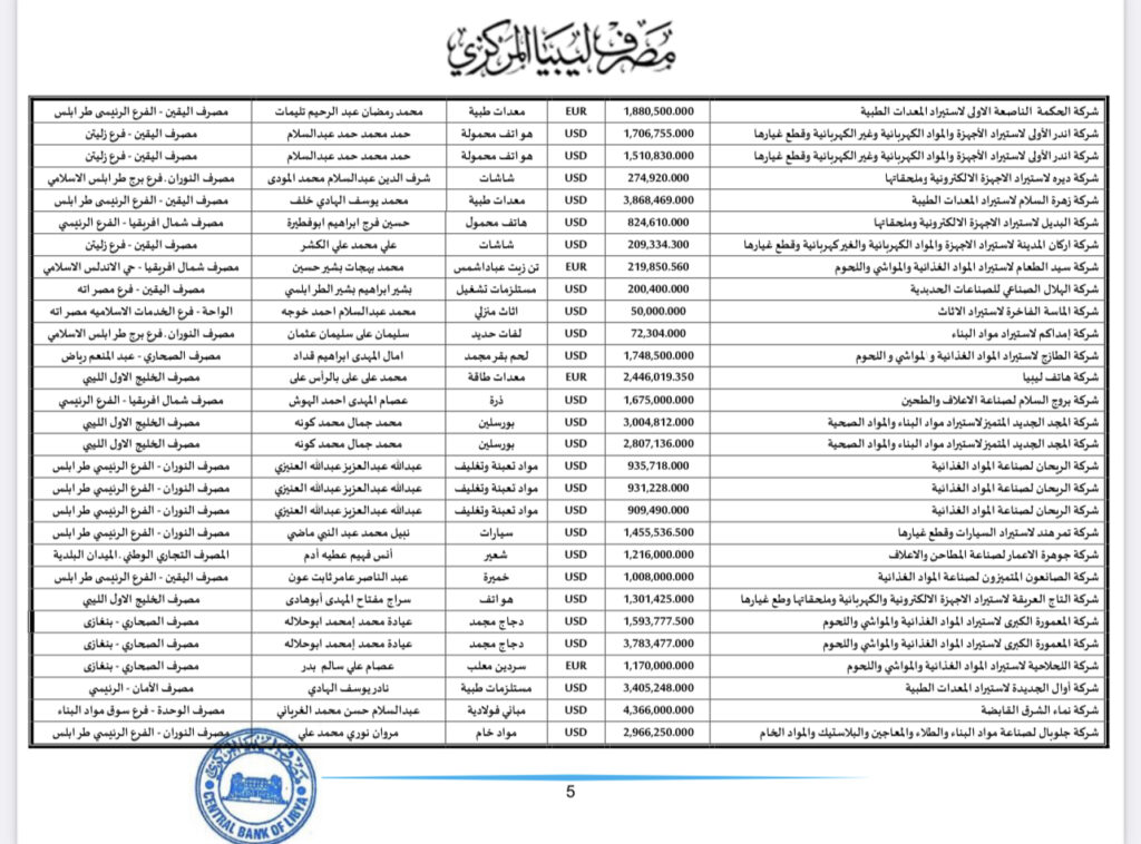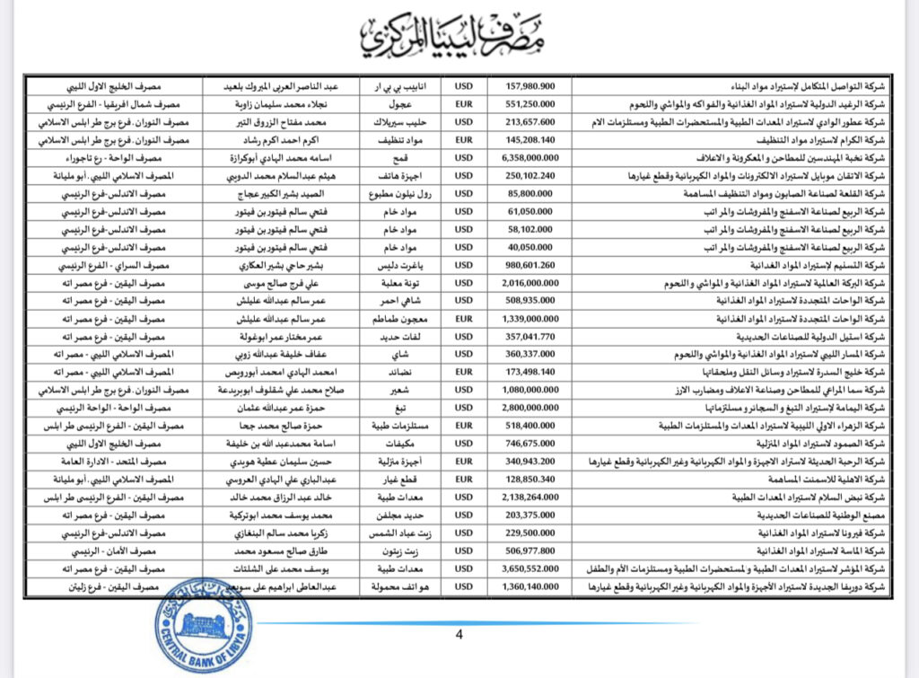 وذلك استناداً إلى منشور إدارة الرقابة على المصارف والنقد بمصرف ليبيا المركزي رقم (9/2020) المؤرّخ في 31 ديسمبر 2020 بشأن الضوابط المنطمة لإجراءات فتح الإعتمادات المستندية وإيماءً إلى الفقرة رقم (5) من الضوابط العامة بالمنشور المذكور والقاضية بموافقة الجهات الطالبة فتح الاعتمادات على قيام مصرف ليبيا المركزي بنشر تفاصيل تلك الاعتمادات.