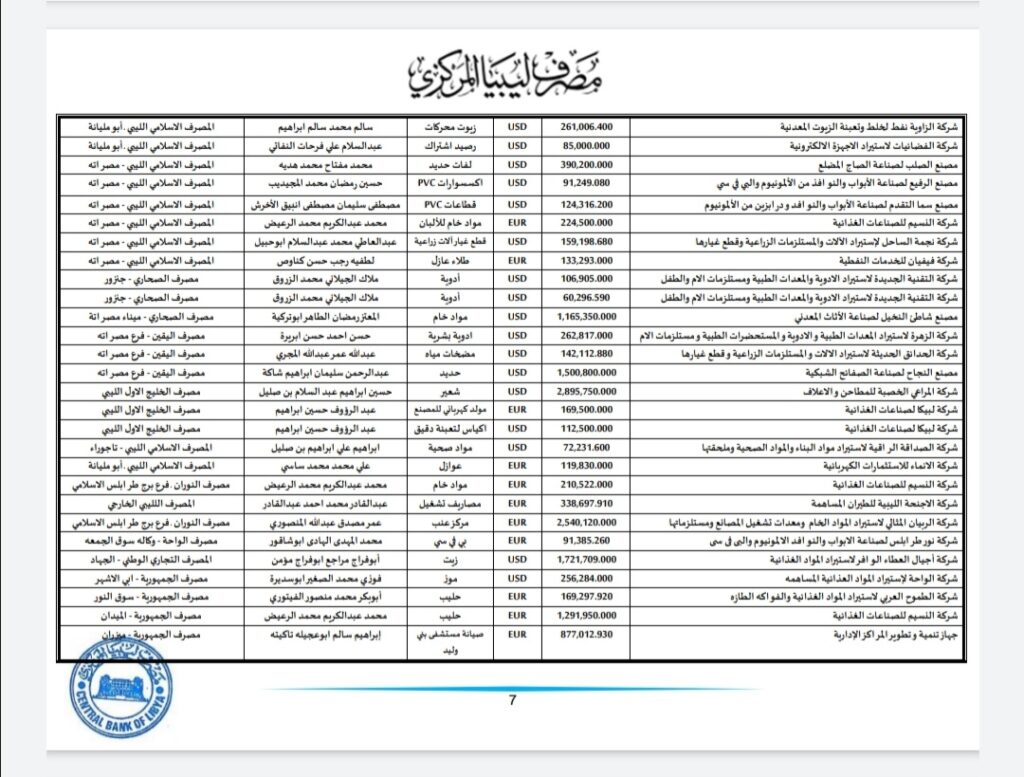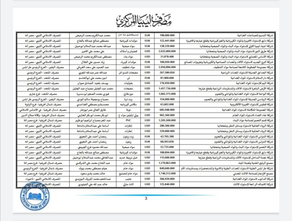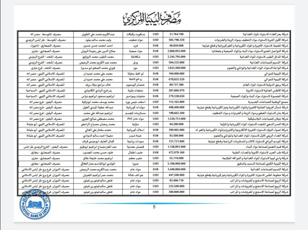 وذلك استناداً إلى منشور إدارة الرقابة على المصارف والنقد بمصرف ليبيا المركزي رقم (9/2020) المؤرّخ في 31/ديسمبر /2021 بشأن الضوابط المنطمة لإجراءات فتح الإعتمادات المستندية وإيماءً إلى الفقرة رقم (5) من الضوابط العامة بالمنشور المذكور والقاضية بموافقة الجهات الطالبة فتح الاعتمادات على قيام مصرف ليبيا المركزي بنشر تفاصيل تلك الاعتمادات.