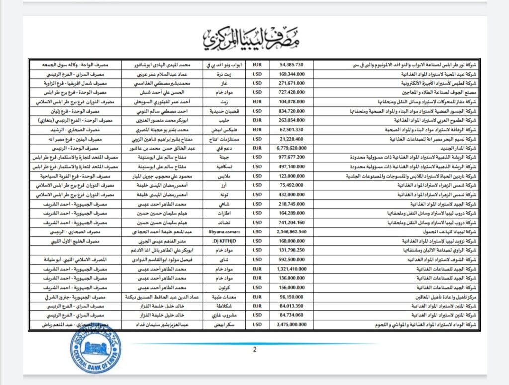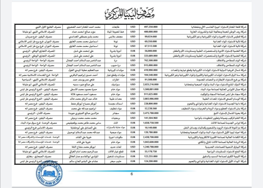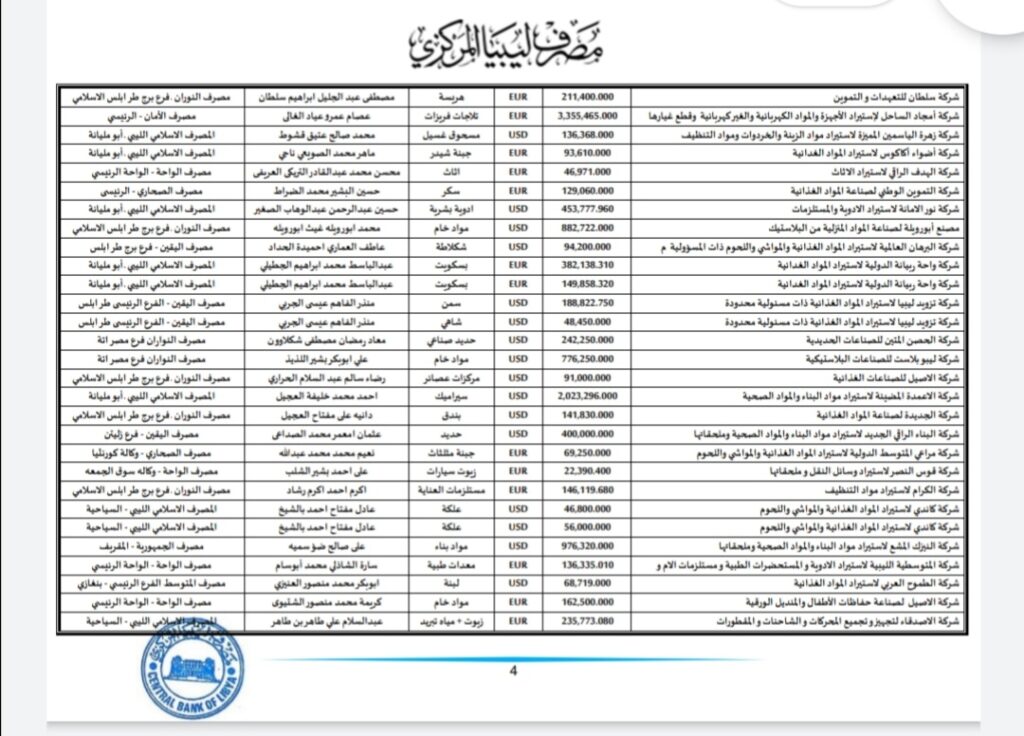 وذلك استناداً إلى منشور إدارة الرقابة على المصارف والنقد بمصرف ليبيا المركزي رقم (9/2020) المؤرّخ في 31/ديسمبر/ 2020 بشأن الضوابط المنطمة لإجراءات فتح الإعتمادات المستندية وإيماءً إلى الفقرة رقم (5) من الضوابط العامة بالمنشور المذكور والقاضية بموافقة الجهات الطالبة فتح الاعتمادات على قيام مصرف ليبيا المركزي بنشر تفاصيل تلك الاعتمادات.