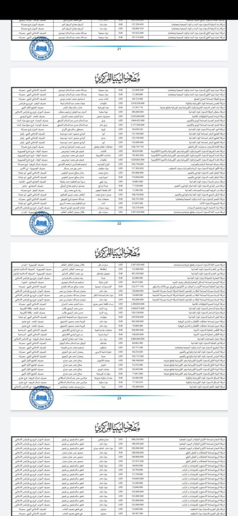المركزي ينشر تفاصيل طلبات فتح الاعتمادات المستندية