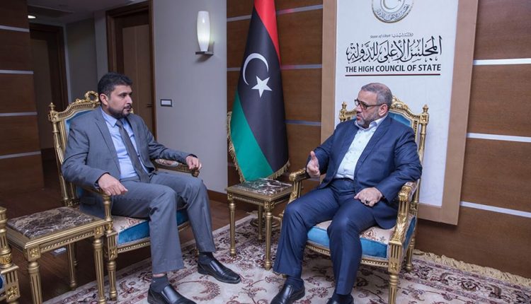 التقى رئيس المجلس الأعلى للدولة “خالد المشري”، اليوم الثلاثاء، بوزير المالية بحكومة الوفاق الوطني “فرج بومطاري”.