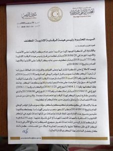 ج/انا متعجب من هذا القرار بإقالتي و تكليف شخص آخر ولكن لم تصلني أي تجاوزات والمركز يعمل بصورة موحدة ولم تسجل عليه أي تقصيرات سواء من الإدارة العامة أو مدراء أو من الفروع، فهذا القرار غير مدروس وبدون معرفة السبب مع العلم ان رئيس هيئة الرقابة الإدارية ” نصر حسن المشاي ” المكلف وليس من حقه إصدار هذا القرار لأنه مكلف لتسيير عمل الهيئة فقط ولهذا الهيئة مقسمة،، ونحن ك مركز الرقابة على الأغذية والادوية نعمل بصورة واحدة ولا توجد لدينا مشاكل مع هيئة الرقابة الإدارية سواء في منطقة الغربية او المنطقة الشرقية ونعمل بصورة واحدة من طرابلس ونتعامل مع جميع الفروع وهذا القرار سيسبب شلل لعمل المركز الان .