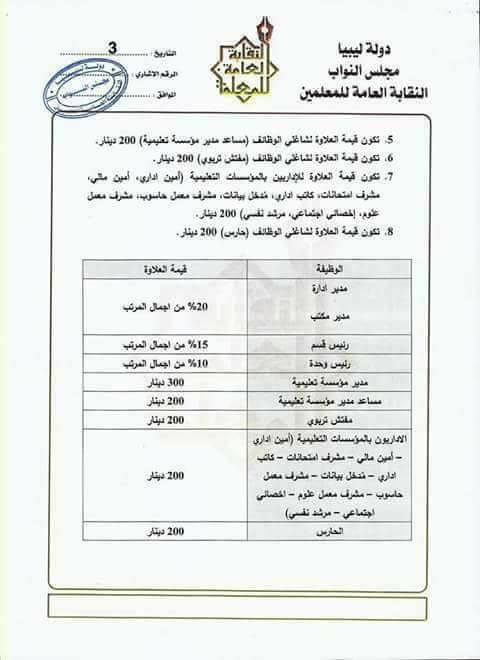 يعلن السادة المعلمين و المعلمات وكافة العاملين بقطاع التعليم في كافة ربوع ليبيا عن إعتصام و إضراب عن العمل العام الدراسي القادم لسنة 2017. 2018  ويطالبون بتحقيق مطالبهم الأتىة :