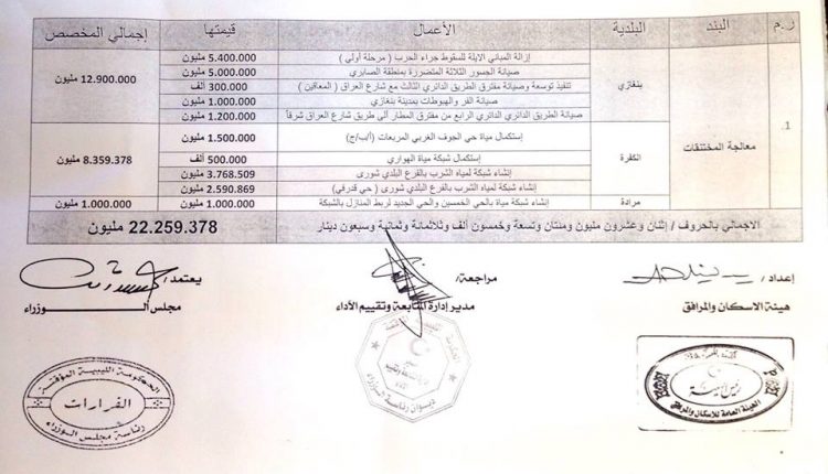 حدد لبلدية بنغازي قيمة اجمالية  قدرها     12,900,000 دينار مليون