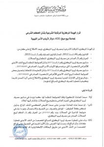 أصدرت الهيئة المركزية للرقابة الشرعية بمصرف ليبيا المركزي قرارا بشأن شرعية بيع مبلغ 400 دولار لكل مواطن ليبي تصرف لأرباب الأسر بحسب الأرقام الوطنية لافراد كل أسرة ، وفقاً لما جاء في منشورات مصرف ليبيا المركزي بالخصوص.