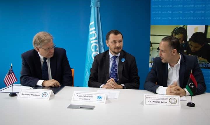 التقى سفير الولايات المتحدة “ريشارد نورلاند” بالممثل الخاص لليونيسف في ليبيا “عبد الرحمن غندور”، وذلك لمناقشة الجهود المشتركة لتحسين الحماية والرعاية الصحية للأطفال في ليبيا .