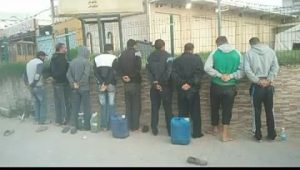 قام جهاز أمني في منطقة المطرد غرب مدينة الزاوية بالقبض على عدد من المهربين أثناء سعيهم لتهريب الوقود عبر الطريق الساحلي وقام الجهاز بعد ذلك بمعاقبة المهربين في الشارع العامة باستخدام “الفلقة” ثم أطلق سراحهم بعد مصادرة كميات الوقود.