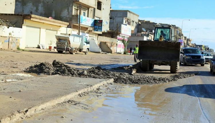 بلدية بنغازي تواصل تسليك وتنظيف شوارع المدينة من مياه الامطار