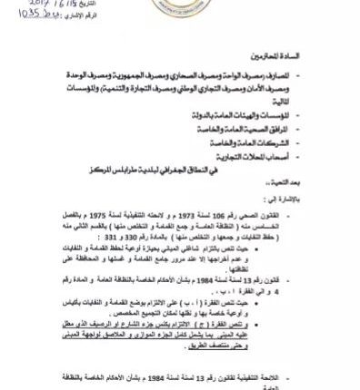 بلدية طرابلس المركز توجه خطابا الى المصارف و الشركات و المؤسسات
