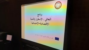 عقد لقاء بين مستشار الوزارة للشؤون الخارجية والتعاون الدولي “عبدالمجيد ابو غرارة” ومدير إدارة المحافظات والبلديات “صلاح فطح مع عمداء ومندوبي عدد من بلديات ” بني وليد – صبراته – مصراته – الزنتان – براك الشاطيء – المايا – مرزق- القطرون-امساعد- الكفرة- صرمان- الخمس- الشويرف ” وبمشاركة من الوكالة الإيطالية للتعاون التنموي لبحث مشروع الانتعاش والاستقرار والتنمية والاجتماعية والاقتصادية في البلديات الليبية.