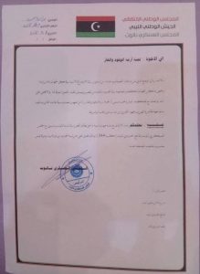 خاطب المجلس العسكري نالوت لجنة ازمة الوقود والغاز بخصوص االاتفاق على نشر قوات عسكرية على الحدود مع تونس لمنع عمليات التهريب