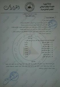 ويترأس اللجنة بحسب القرار “القذافي سالم صالح” وبعضوية كل من “سعد مفتاح” و”الطيب القبي” و”الشريف عبدالله عمر” و”محمد أبوخريص” و”عمّار العباني” و”امحمد علي فرج” و”ليلى الهوني”.