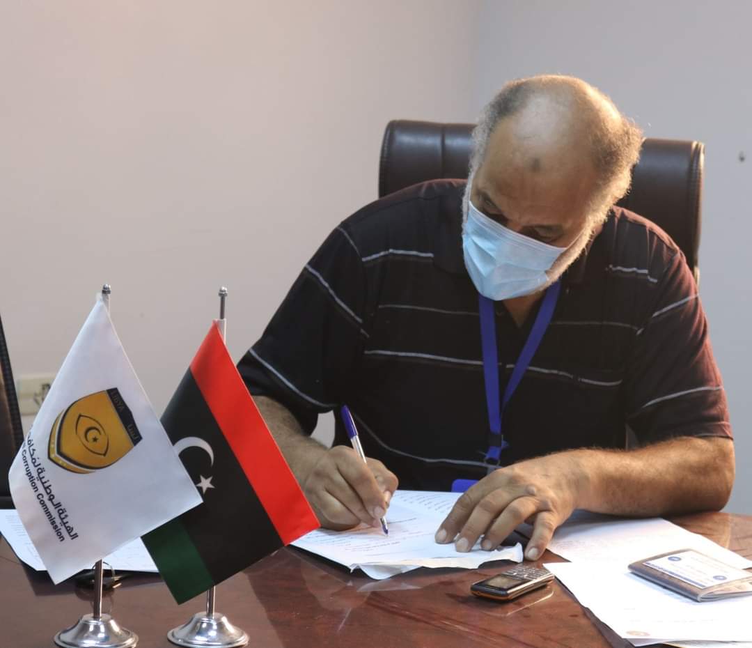 تعبئة إقرار الذمة المالية من قبل مدير الادارة الفنية بمستشفي الحروق والتجميل طرابلس