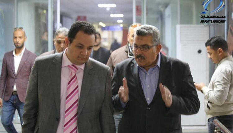 تفقد رئيس مصلحة المطارات د. محمد بيت المال الاثنين رقفة مدير إدارة المشاريع الهندسية بالمصلحة محمد فساطوي مطار معيتيقة الدولي.
