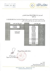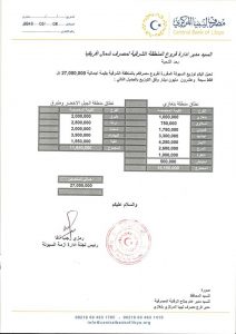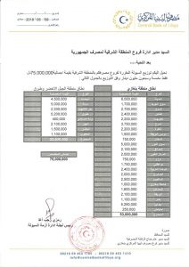 أعلن مصرف ليبيا المركزي بالبيضاء عن تخصيص 300 مليون دينار للمصارف التجارية للمنطقة الشرقية مضيفاً بأن التوزيع على المصارف سيكون يوم الخميس 10/5/2018، وأن التوزيع على المواطنين سيكون يوم الأحد 13/5/2018.