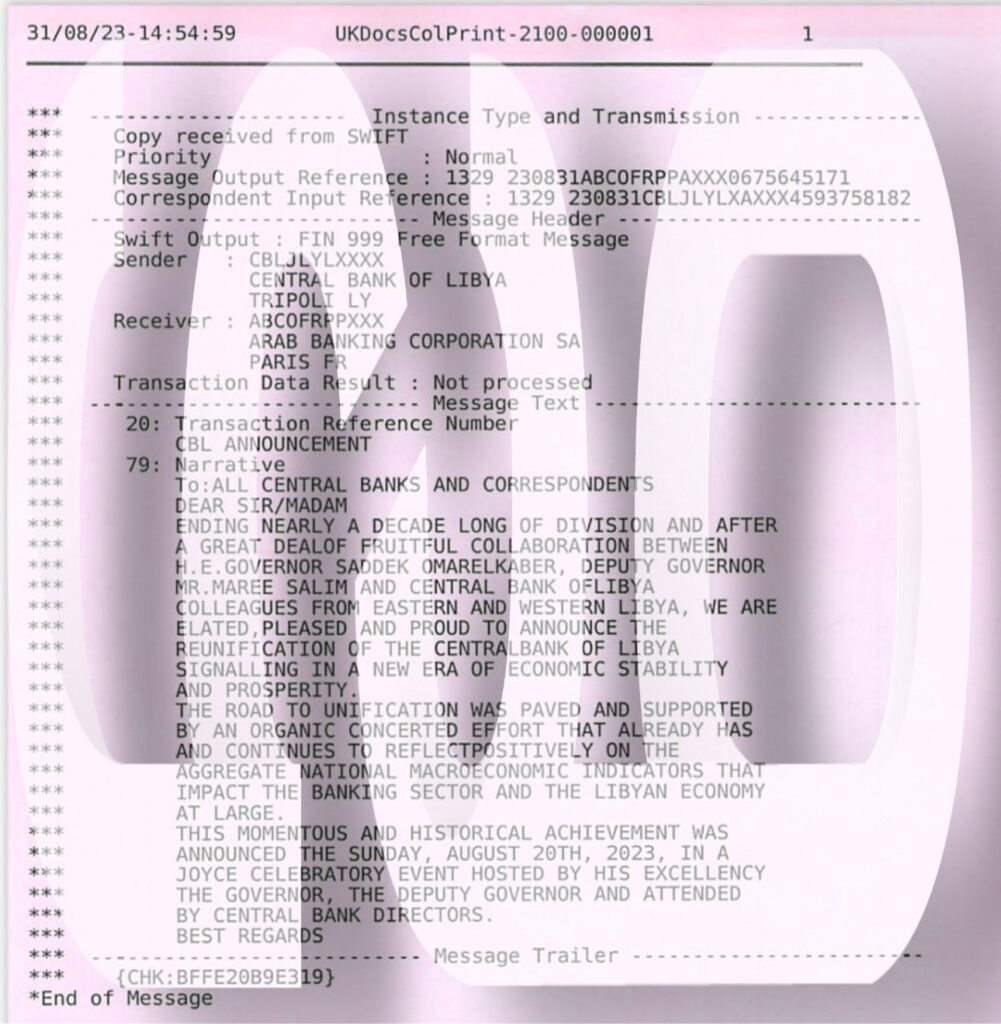 تحصلت صحيفة صدى الاقتصادية حصرياً على تعميم مصرف ليبيا المركزي إلى كافة المراسلين والمؤسسات الدولية بعلام التوحيد .